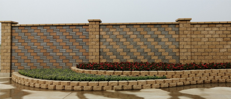 此產(chǎn)品不僅具有普通承重砌塊的優(yōu)良性能,而且具有與石材一樣的裝飾外表面,把承重和裝飾結(jié)為一體,在施工時(shí)建筑結(jié)構(gòu)同步完成。其裝飾效果可以通過單一品種或多種砌塊組砌、設(shè)計(jì)排磚方法、與其它裝飾材料配合應(yīng)用、適當(dāng)選用灰縫的顏色、以及改變局部墻體砌塊的凹凸程度等各種措施加以實(shí)現(xiàn)。裝飾砌塊不僅應(yīng)用于室外,也可以用于室內(nèi)墻面。其中,條紋面、劈裂面和磨光面效果,古樸、典雅、風(fēng)格前衛(wèi)。