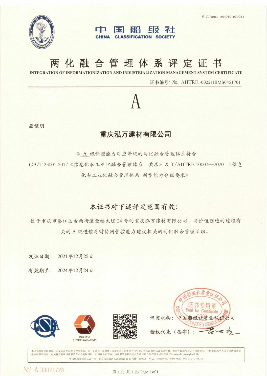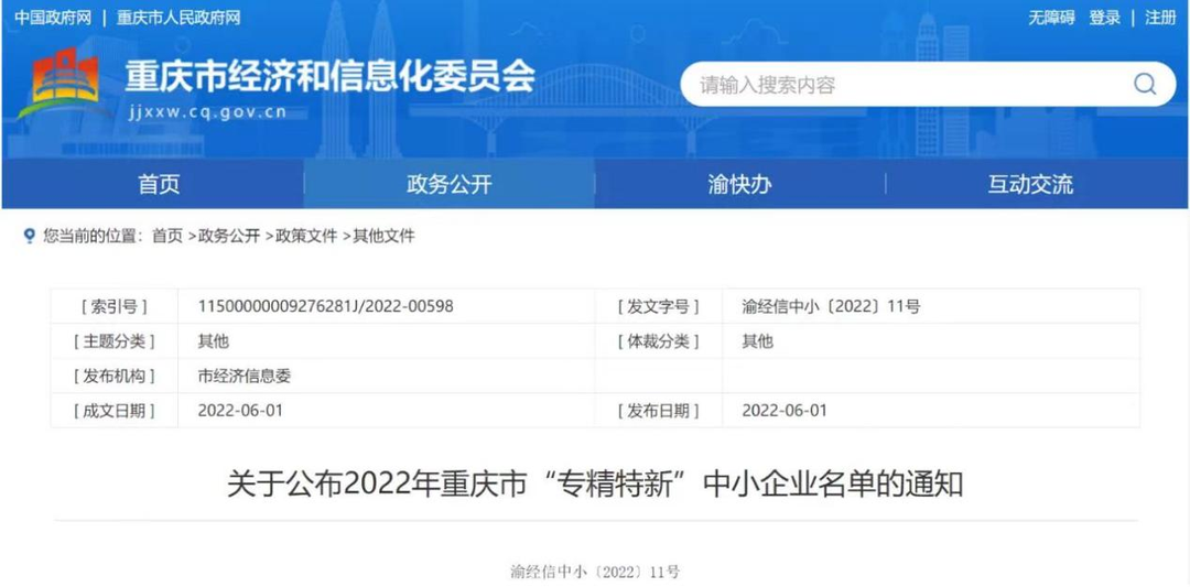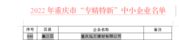 2022年6月1日,重慶市經(jīng)濟(jì)和信息化委員會(huì)公布了2022年重慶市“專(zhuān)精特新”中小企業(yè)名單。重慶泓萬(wàn)建材有限公司榮獲“專(zhuān)精特新”企業(yè)稱(chēng)號(hào)!